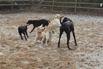 Er wordt ook nog gespeeld door de honden met elkaar, vaak in groepjes die bij elkaar passen, want het moet wel een leuke ervaring blijven.
